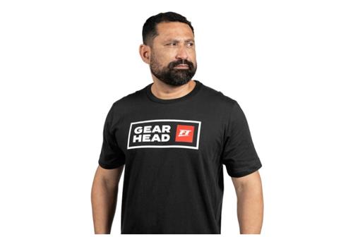 La camiseta negra GearHead FuelTech está confeccionada en 100 % algodón, con mangas cortas y cuello redondo.